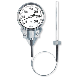 Termometr gazowy z kapilarą do zdalnego odczytu lokalnego pomiaru temperatury. Możliwość odseparowania tarczy od miejsca punktu pomiarowego. Termometr przeznaczony do zastosowań przemysłowych tj przemysł chemiczny, spożywczy, petrochemiczny, energetyczny itd. Klasa dokładności 1,0% i wykonanie w... zdalny odczyt /F/ z kapilarąwykonanie tylne /A/, radialne /R/
