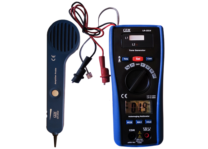 LA-1014 to uniwersalny multimetr posiadający szereg funkcji pomiarowych. Urządzenie rozbudowane jest o tester lini telefonicznej i lokalizator przewodów. Miernik posiada bardzo wytrzymałą gumową obudowę charakteryzującą się dużą odpornością na uszkodzenia mechaniczne.
