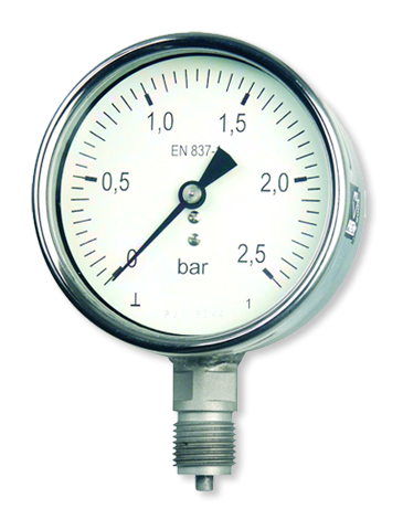 Manometr w wykonaniu w całości ze stali nierdzewnej przeznaczony do pomiaru substancji ciekłych i gazowych oraz mediów agresywnych. Poprzez zastosowane materiały temperatura medium może sięgać 200ºC. Przy zastosowaniu płynnego wypełnienia temperatura ta spada do 100ºC Odporne na działanie zanieczyszczeń w postaci pyłów, oparów lub warunkó atmosferycznych.
