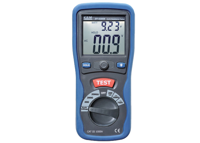 DT-5300B to profesjonalny miernik rezystancji uziemienia zabudowany w gumowej obudowie odpornej na uszkodzenia mechaniczne. Miernik posiada duży czytelny wyświetlacz LCD z podświetlaniem i aktualnym wskazaniem stanu baterii. Pomiar wykonywany jest metodą trójprzewodową, badając testowany uziom z dwoma prętami odniesienia. Miernik mierzy zakłócające napięcie ziemi generowane przez prądy błądzące, oraz ma możliwość kompensacji rezystancji przewodów pomiarowych za pomocą potencjometru zerowania.