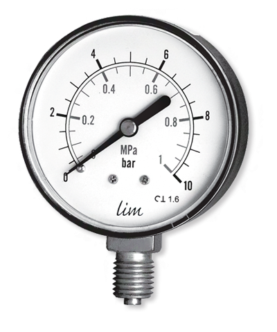 Standardowy manometr przeznaczony do pomiaru ciśnienia mediów nieagresywnych - mechanizm stopy miedzi lub mosiądz oraz w miejscach gdzie nie występuje duże zapylenie atmosfery. Dedykowane do pomiaru ciśnienia cieczy i gazów w sieciach wodociągowych, pneumatyce, systemach grzewczych itp. Temperatura otoczenia pracy manometrów od -40ºC do 60ºC