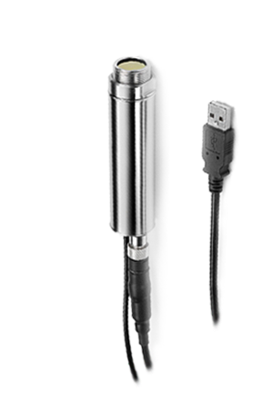 Pirometr stacjonarny z wyjściem analogowym 4÷20mA i cyfrowym USB. Zestaw zawiera kabel komunikacyjny USB i oprogramowanie CalexSoft, za pomocą którego można zmieniać parametry konfiguracyjne pirometru (zakres temperatury, współczynnik emisyjności) oraz służy do rejestracji temperatury.