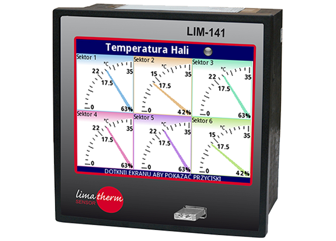 LIM-141 to zaawansowany regulator / rejestrator danych, opracowany do specyficznych potrzeb każdego klienta. Urządzenie można rozbudować o różnorodne moduły kontrolno-pomiarowe, moduły komunikacji USB, Ethernet, RS-485, lub wiele innych pomocnych akcesoriów. Wygodną i intuicyjną pracę gwarantuje duży - 5,7 calowy kolorowy wyświetlacz dotykowy. Oprogramowanie urządzenia oparte jest o system operacyjny LINUX, które gwarantuje stabilną i niezawodną pracę. Rejestrator posiada wbudowane zaawansowane funkcje pomiarowe takie jak: regulacja PID, profile/ timery, funkcje matematyczne, pochodna, całka, licznik impulsów, przerzutnik, średnia, oraz wiele innych. Rejestrator wyposażony został w pamięć wewnętrzną 1,5 GB, a pobieranie danych z urządzenia można zrealizować z wykorzystaniem złącza Modbus RTU, PenDrive'a, portu USB Host, lub poprzez łącze Ethernet.