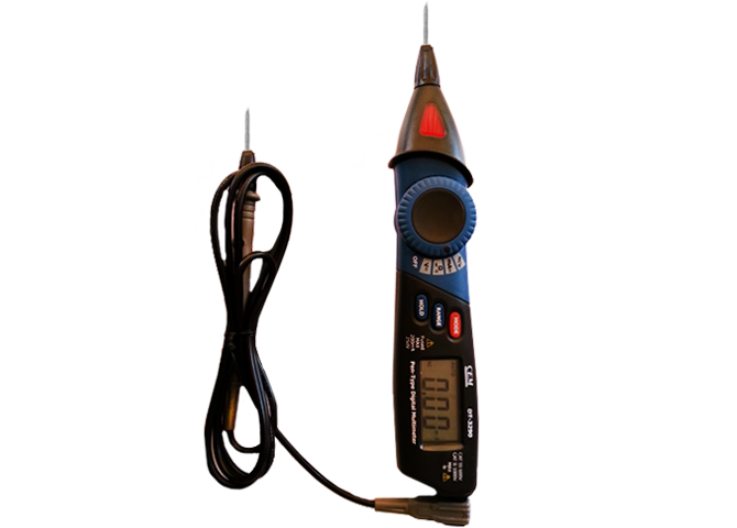 DT-3290 to uniwersalny multimetr długopisowy posiadający najważniejsze funkcje pomiarowe, oraz bezkontaktowy detektor napięcia zmiennego NCV. Wskaźnik posiada bardzo wytrzymałą gumową obudowę charakteryzującą się dużą odpornością na uszkodzenia mechaniczne.